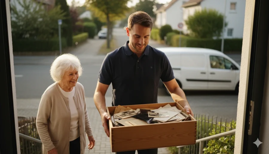 Persönliche Abholung und Rückgabe Ihrer analogen Schätze – sicher, bequem und direkt vor Ihrer Haustür.